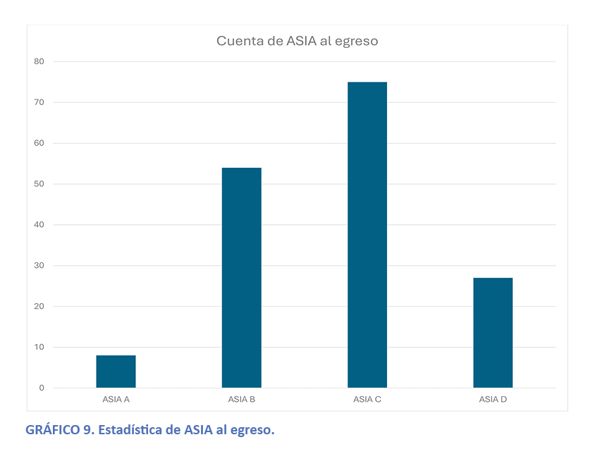 Tercero, queda demostrado que, a pesar de la severidad del déficit neurológico inicial, evidenciado en la alta proporción de pacientes con clasificaciones ASIA A y B al ingreso, el abordaje rehabilitador integral y prolongado ofrecido por la institución se traduce en una mejoría funcional objetiva y significativa. La transición de un número considerable de pacientes hacia grados de menor severidad (ASIA C y D) al egreso, constituye la evidencia más robusta del impacto positivo del tratamiento especializado, validando el rol crucial de los centros de rehabilitación en la optimización de la capacidad funcional y la promoción de la independencia en esta población. La elevada frecuencia de comorbilidades como el dolor neuropático y la espasticidad confirma a su vez la complejidad del manejo clínico y la necesidad de un enfoque multi disciplinario continuo.
